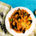 The Amazing Pasta with spicy sauce and 4 cheese topping, served with our special dippings